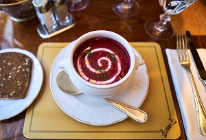 So I ordered my favourite soup – borscht – followed by a normal schnitzel. My guests had the herring and goulash.