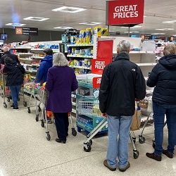 “… Yes, this is the period reserved for essential workers and the elderly. The store doesn’t open to the general public until nine o’ clock …”, and with that she pointed to the far side of the store, where previously I had myself queued to enter on numerous occasions, and where there was already a fast-lengthening queue of prospective shoppers gathering in readiness for their 0900 hours start.