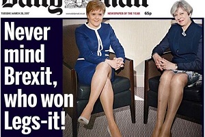 My first exhibit is the furore that erupted in the media itself – and on social media (I mention that not because I’ve noticed it myself as I don’t use social media but because I’ve heard it second-hand from others) – about the front page story in yesterday’s Daily Mail reporting upon the Prime Minister’s last-minute dash to Scotland to meet with the Scottish First Minister Nicola Sturgeon before today’s triggering of Article 50 and the starting gun for the two year period of British/EU negotiation over our leaving deal.