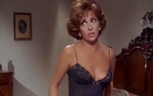 Here she played Carla Campbell who took in (literally) 3 GIs during the Italian campaign of 1943. Unsure who the father was after she became pregnant, she took monthly pay checks from all three and – to avoid local disapproval – acquired for herself the name Campbell after the soup can.