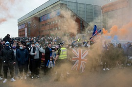 And then last night on the evening television news I watched scenes of thousands of Rangers FC fans celebrating together like lunatics – this in total defiance of the Scottish government’s ban upon public gatherings – outside their stadium after the club’s 3-0 victory over St Mirren took them to within a whisker of their first League title in a decade.