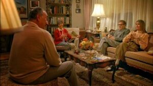 However there is a repositioning of attitude after Larry meets up professionally with novelist Marcia Fox (Anjelica Huston) whom he sees as a potential date for Ted. She convinces Larry that there is something wrong afoot but Carol, jealous of her, becomes the cynic.