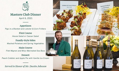 I have a feeling that Dustin Johnson will not be re-ordering Pigs in the Blanket (whatever they are) for the traditional Green Jacket winner meal but the cuisine will either be Texmex (Justin Thomas or Jordan Spieth) of Paella con Gambas (Jon Rahm)