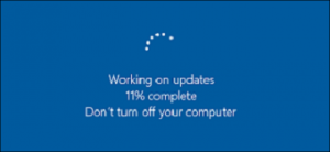 With huge reluctance (because I knew from experience what was about to happen), I duly “saved and closed” my document and waited. Shortly afterwards the screen went blank and a kind of rolling series of dots began circulating in a clockwise direction in the centre of my screen, shortly thereafter signalling that the process was “5% complete” …