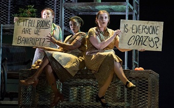 Thus the opening scene was a newsreel interview with Chaplin who at various points in the opera returned to write “forward” on the floor. Various accoutrements of the studio – director’s chairs, film cans, overhead lights even a casting couch – are strewn across the set. Again unnecessary.