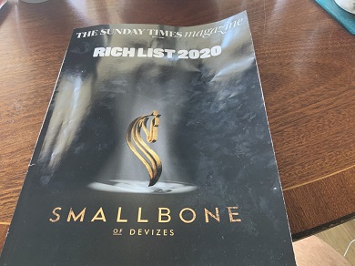 Certainly its the only time I buy The Sunday Times. I suspect the reason for this has nothing to do with wealth and everything to do with advertising. Anything capturing and captivating wealth must attract advertisers. The front cover is sponsored by Smallbone of Devizes and within the glossy pages, you will not be surprised to learn, are adverts for CAF the Charities Aid Foundation and Cancer Research.