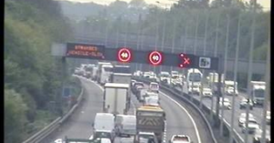 Then one of those yellow lights on black electronic messages came up at the side of the M25 featuring a “Road narrowing” sign and the words “Lane closed”.