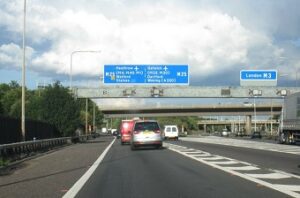 I filtered – as per normal – over to the right and the slip road taking me from the M25 onto the M3: I needed the right hand of the latter’s lanes because, of course, I was going “right” in order to turn up towards Richmond (London).