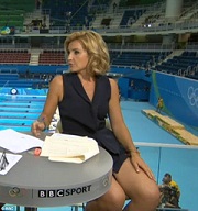 To be fair, there have apparently been a number of them (I have not seen any myself, but I’ve noticed references to two or three on social media) and in particular I want to mention the episode two or three nights ago at the swimming meet, when poolside BBC presenter Heather Skelton wore a little black number showing a fair bit of thigh that suddenly sent the Twittersphere wild with accusations of inappropriateness … and then counter-claims of “Woman has legs – get over it!” defending Skelton and her choice.